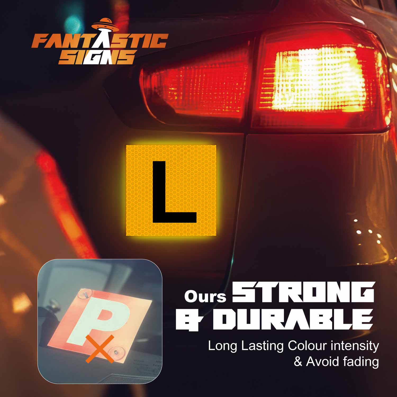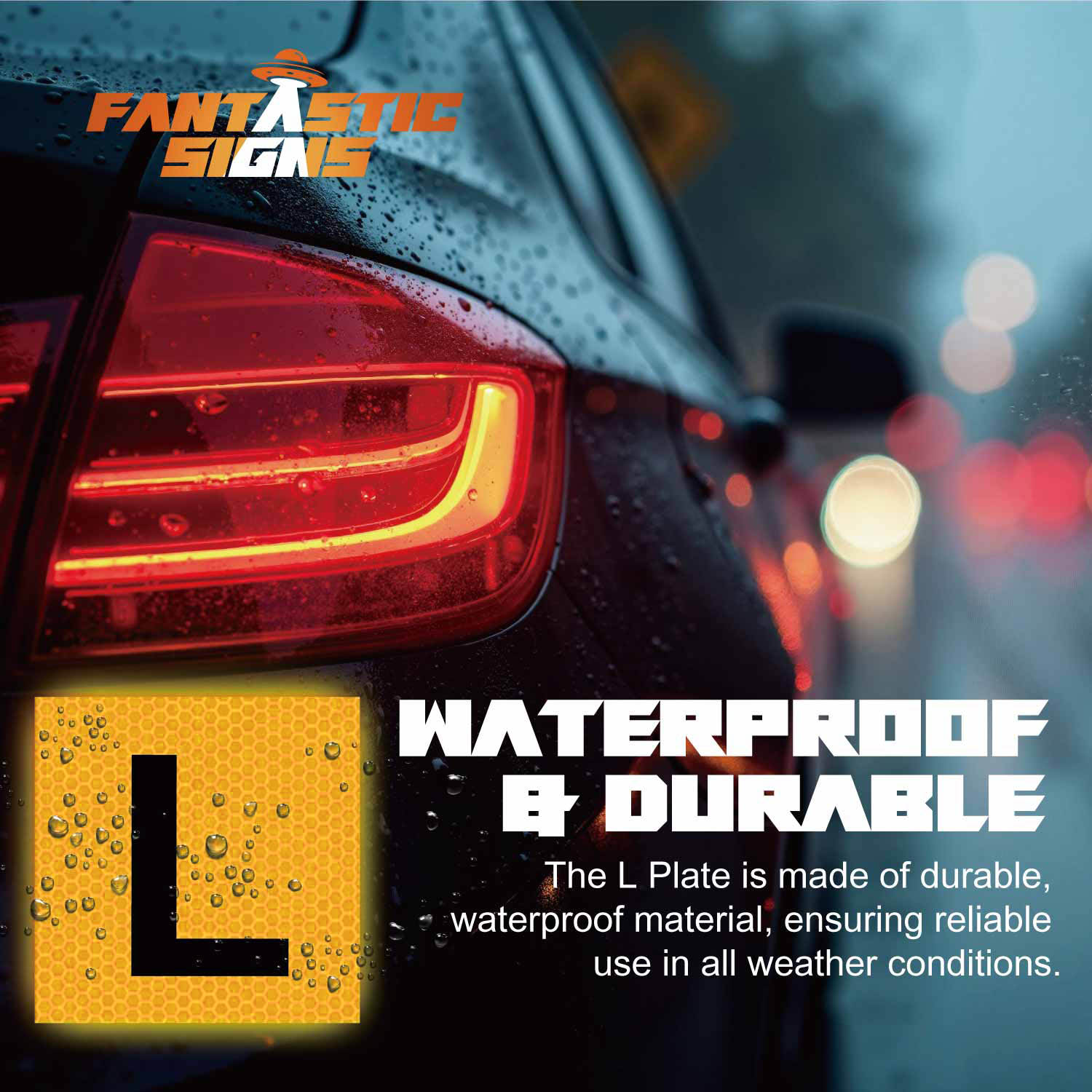 The L Plates is made of durable, waterproof material, ensuring reliable use in all weather conditions.
